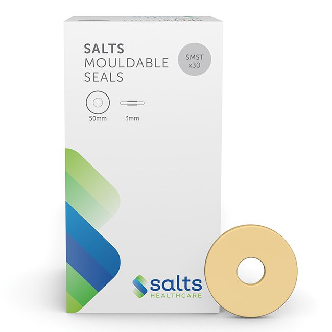 Uszczelki Salts Mouldable Seals są niezwykle plastyczne, co pozwala zapobiegać wyciekom powodującym podrażnienia skóry poprzez dopasowanie się do kształtu i rozmiaru stomii. Dopasowują się one do kształtu brzucha, tworząc indywidualną, wygodną i szczelną uszczelkę, a przyjazny dla skóry pierścień stomijny pomaga chronić skórę przed zaczerwienieniem i podrażnieniem. Pomagając wydłużyć czas noszenia, plastyczne uszczelki Salts są idealne dla osób z ileostomią lub urostomią.